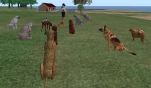 Logan has dogs, right? A lot of dogs. Not as many dogs as Blu… but really quite a lot of dogs. Some live on Turing Isle with us and some live at that Anglia place. A lot of dogs, look here are most of them.