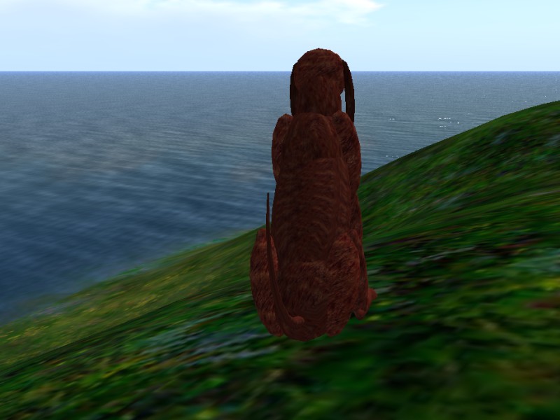 I had to help Logan’s friend with some Linux and stuff, so we went to the place where she was working. Most of the time I was grafting away and Logan was going something like, “Zzzzzzzzzzzz…….” (which is actually quite good, because it leaves me in peace). Anyway, we stopped for a break and Logan and her friend were talking about some old rubbish and I was looking around and I saw Logan’s friend’s dog on the hillside looking out to sea.